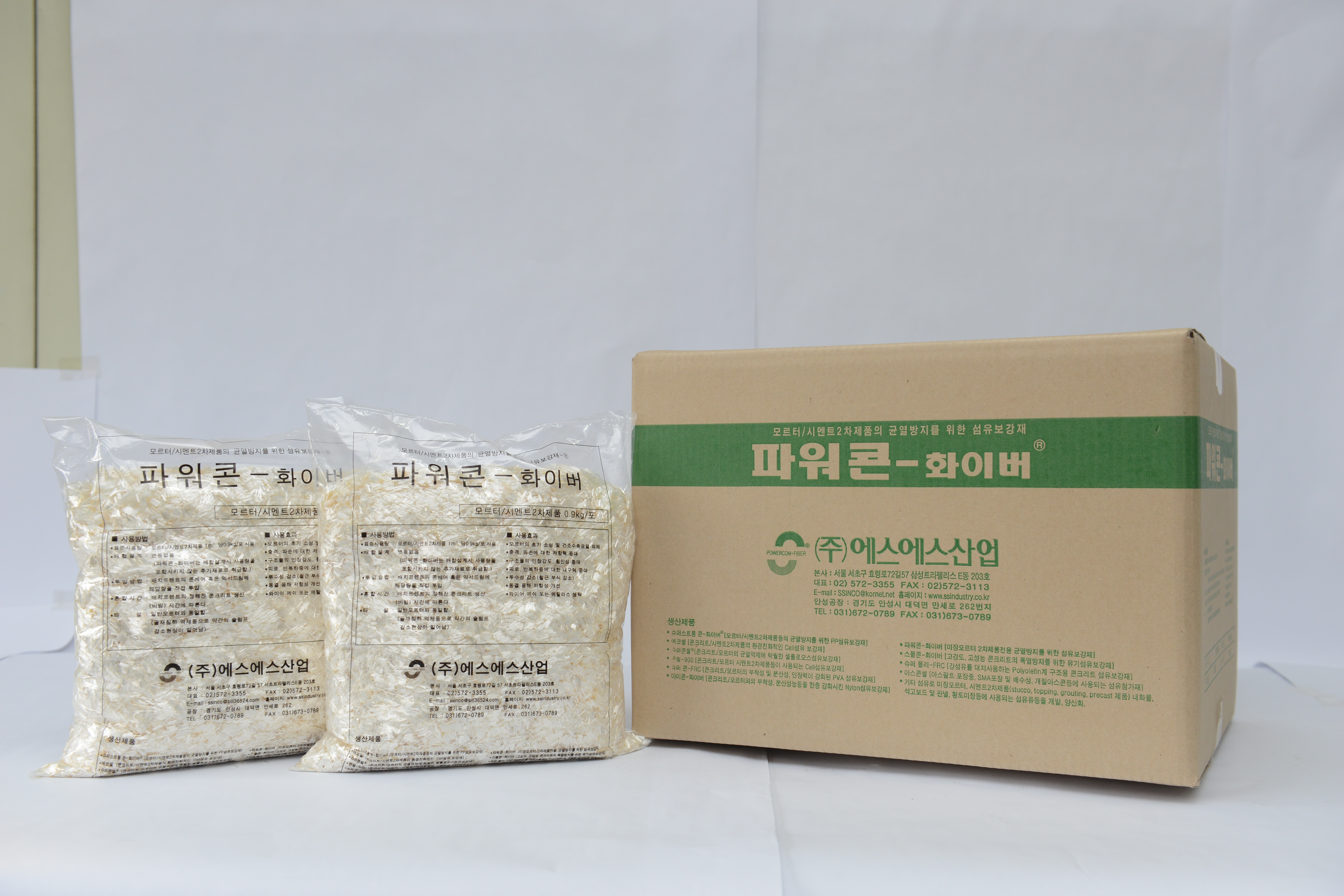 - 파워콘-화이버는 모르터/ 콘크리트의 3차원 입체섬유보강재로 – 균열억제, 인장강도, 휨인성증대 등으로 – 내구성 증대효과를 볼 수 있습니다. (품질향상-수명연장효과)