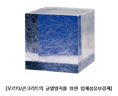 또한 섬유의 가교(Bridging) 작용을 통하여 시멘트 복합체의 소성 및 건조수축 균열 저감은 물론, 인장강도, 휨인성증대, 충격파손, 반복하중에 대하여 저항할 수 있는 힘을 높여주는 등, 시멘트 복합체의 역학적 성질을 개선시키는데 매우 효과적인 작용을 합니다.