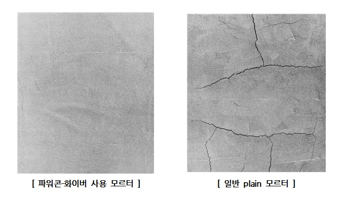 “파워콘-화이버” 사용에 따른 균열감소효과는 일반 plain과 비교하여 85%(±10%)이 균열감소 효과를 얻을 수 있습니다.
