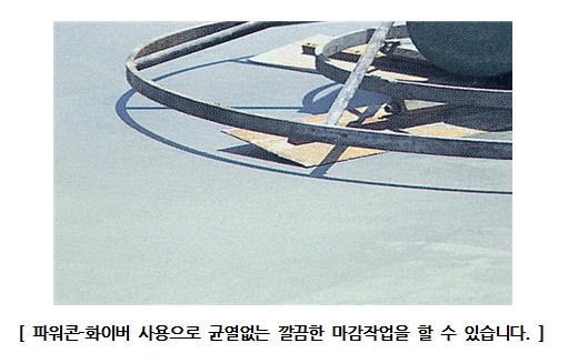 - “파워콘-화이버”는 섬유직경이 작고 미세하여 표면 노출현상이 전혀 없으며, 우수한 작업성능 등으로 마감성이 매우 우수합니다.(양호한 표면유지)