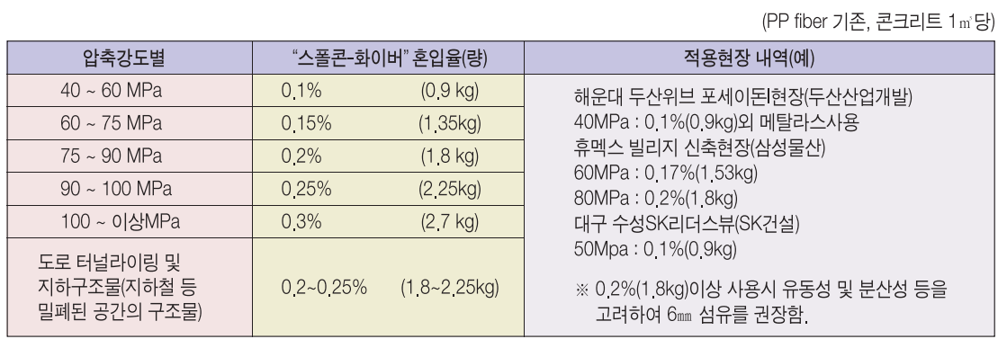 또한 “스폴콘-화이버” 혼입량이 적정량 이하일때도 폭열현상이 발생합니다.