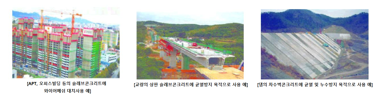 섬유길이 25 , <36> , 51 ㎜고속도로의 콘크리트포장도로 및 중앙분리대등의 slip-forming 작업등에 사용 (barrier 나 parapet의 주저 내림을 막아줌.) 0.9kg/포